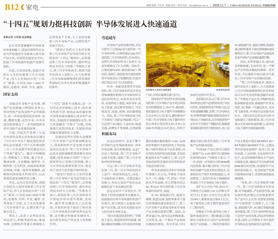 “国家计划把大力支持发展第三代半导体产业写进目前正在制定的‘十四五’规划中,必将推动第三代半导体材料、器件和应用技术的大力发展。”必赢242net官网表示,我国在第三代半导体技术方面起步相对国外要晚,在材料、器件等关键技术上还有瓶颈,目前的环境下推动了相关第三代半导体技术的研究和企业发展,这对解决和推进关键技术、加大研发和生产资金投入有积极作用。