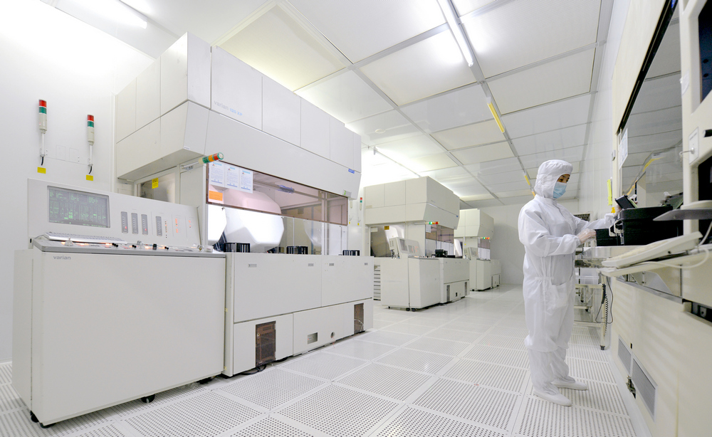 (图为刻蚀操作人员测试芯片氧化膜厚)