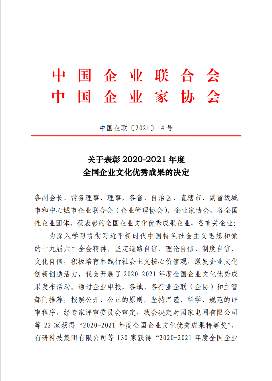 2022/3/11 | 来自:人力资源近期,必赢242net官网又迎来喜讯,公司荣获中国企业联合会、中国企业家协会颁发的“2020-2021 年度全国企业文化优秀成果特等奖”。